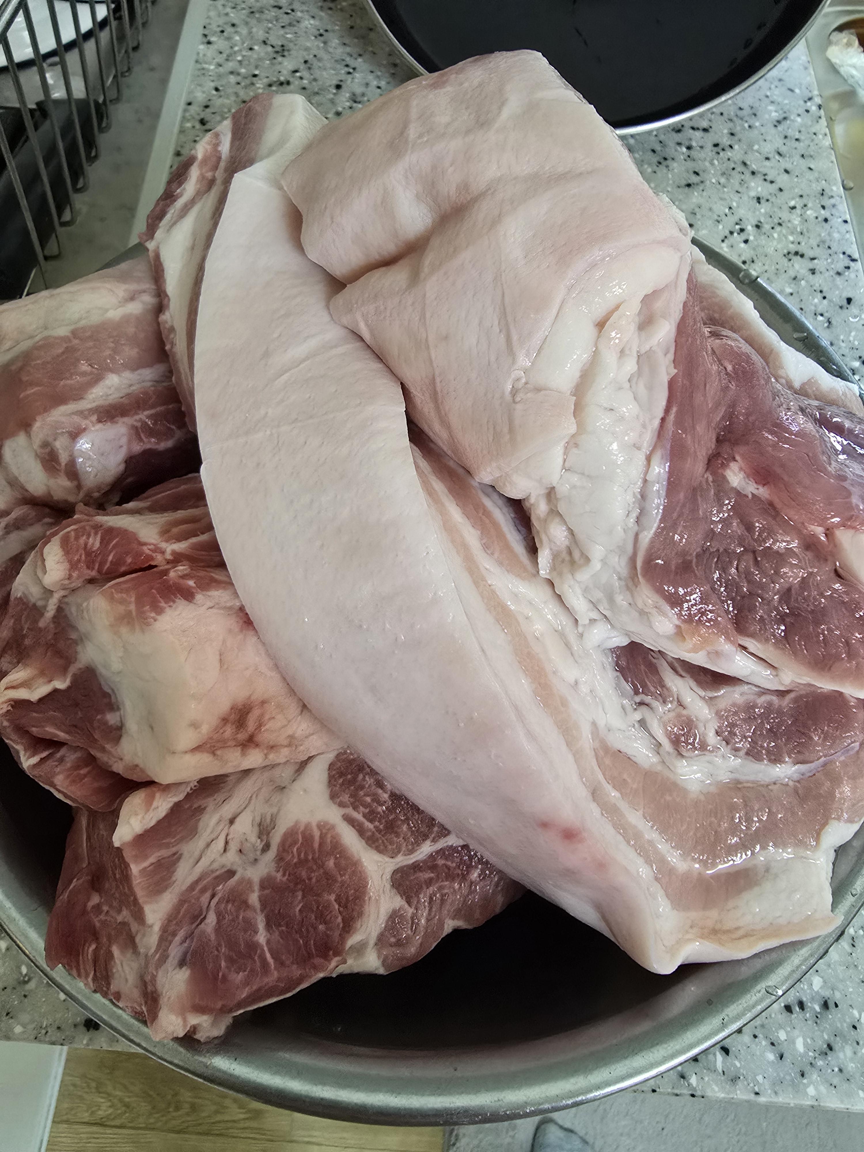 이번에도 좋은 고기를 많이 사두셨기에 큰 솥에 삶기 시작했답니다.