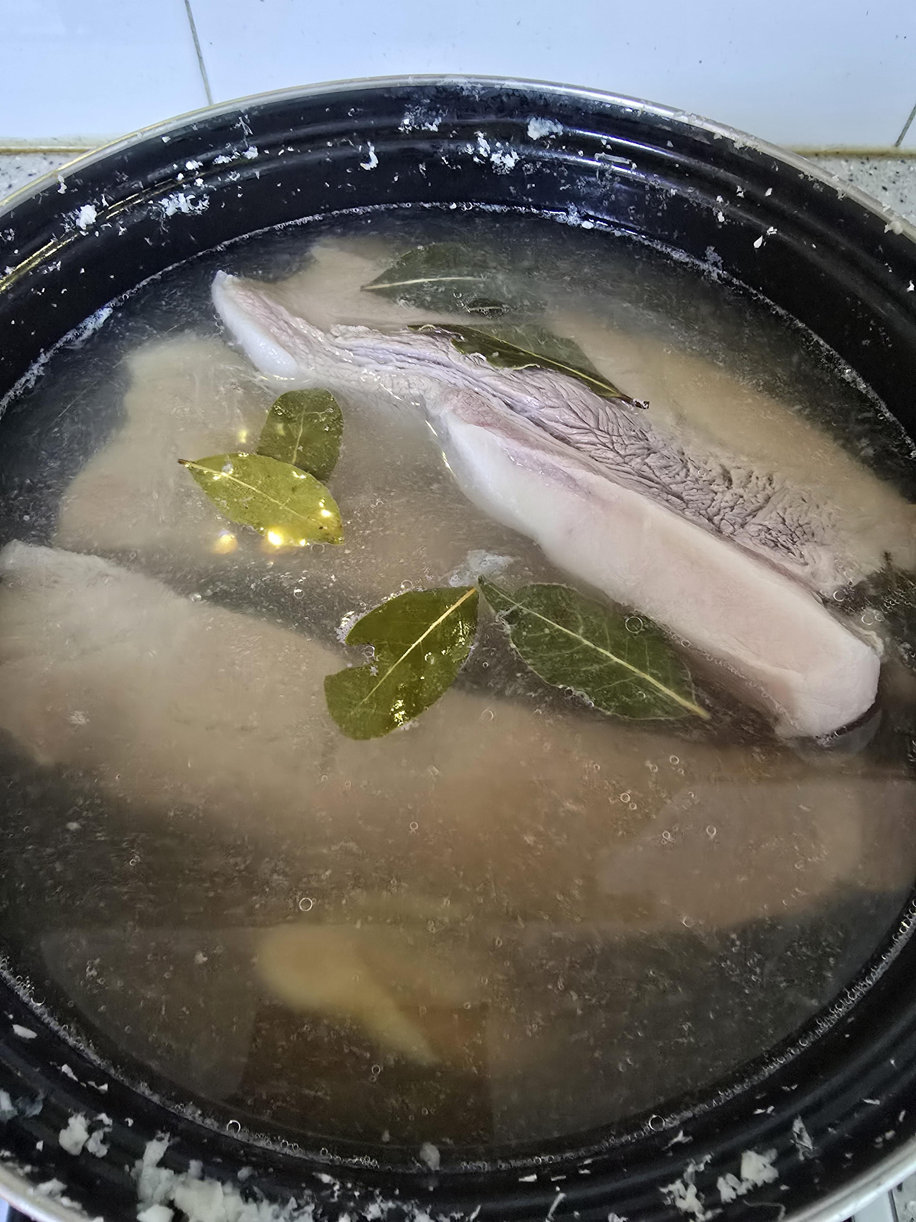 이번에도 좋은 고기를 많이 사두셨기에 큰 솥에 삶기 시작했답니다.