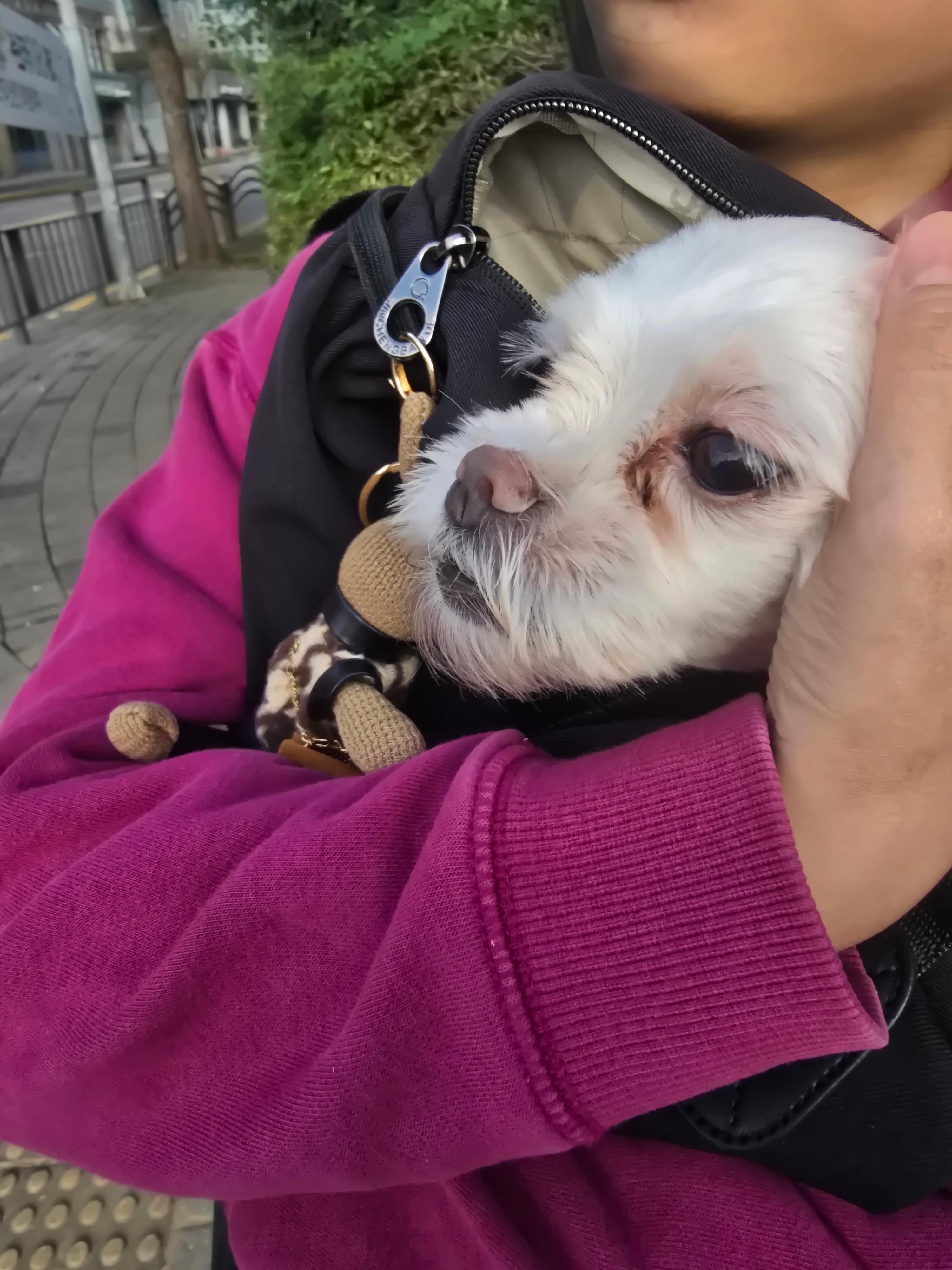동물병원에 갈 때는 요렇게 가방 속에 쏙 들어가는 아리씨입니다.