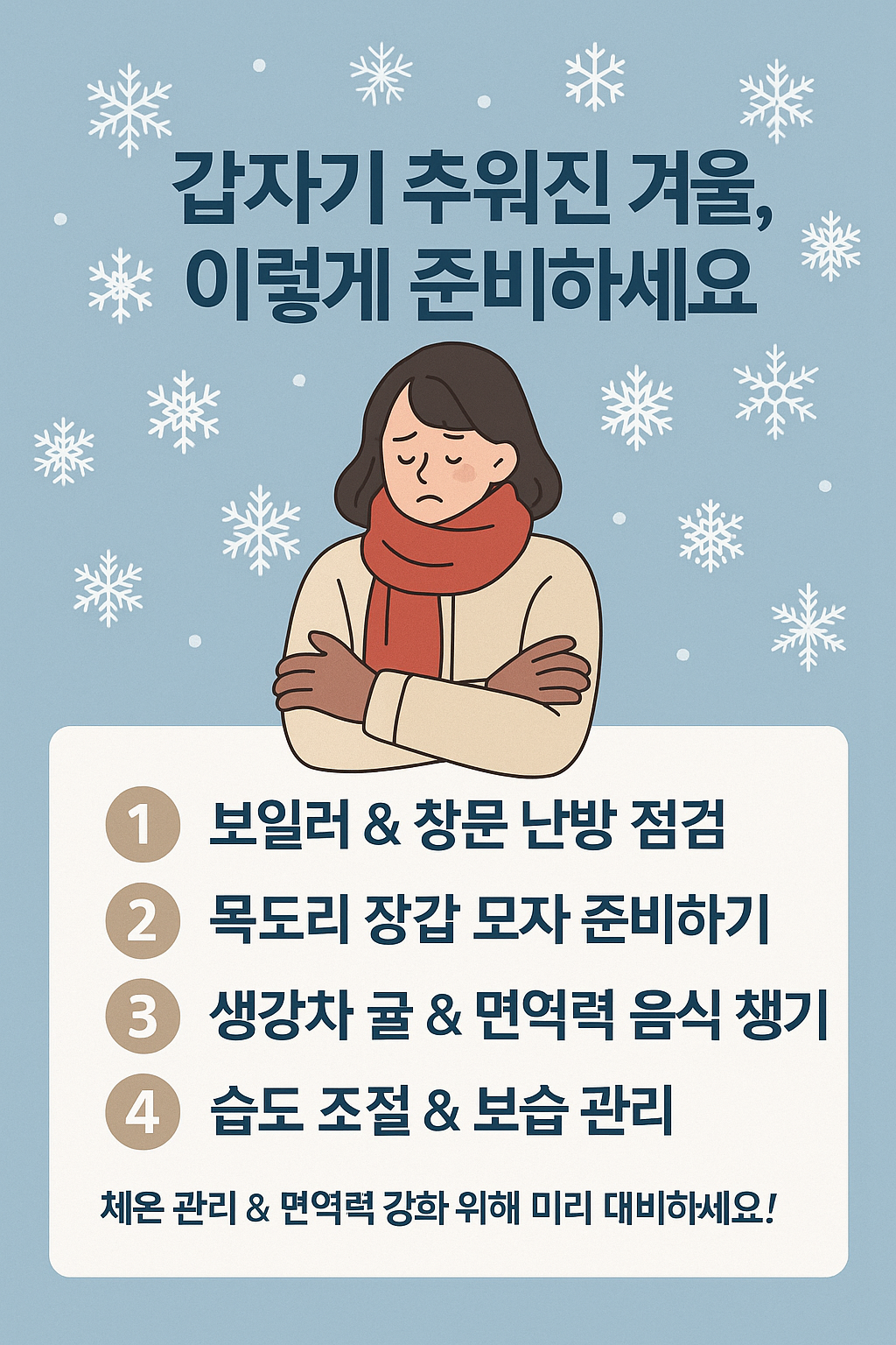 특히 겨울은 면역력 관리·난방 준비·생활 습관 조절이 매우 중요해요.