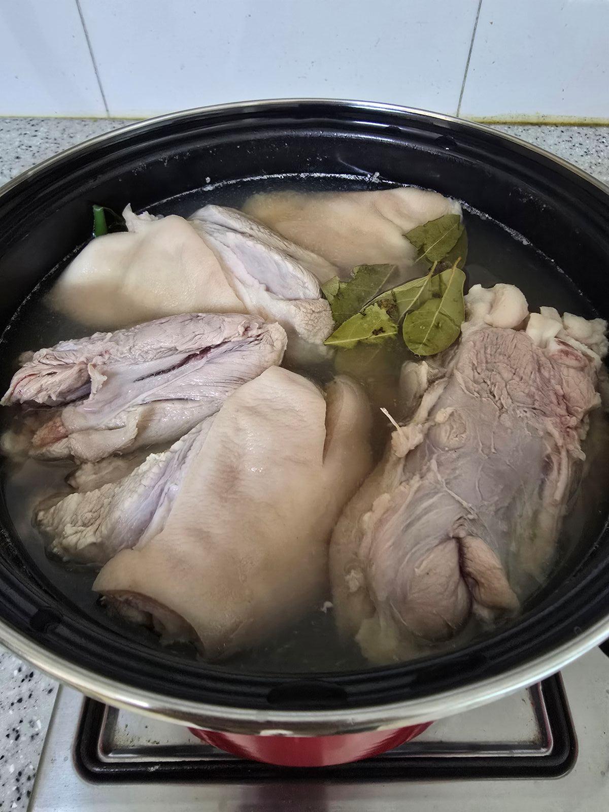 어머님 나가신 사이 식사 마치고 먹은 것 설겆이 하고, 수육거리 사놓으신거 꺼내서 수육 삶을 준비를 시작했어요.