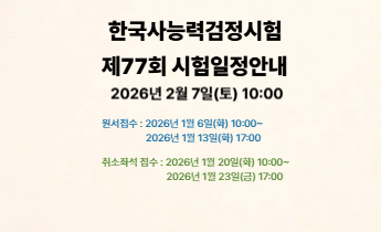 당시에는 그냥 놔뒀습니다만, 사실 1급 취득을 목표로 다시 시험을 치를 생각을 하고 있습니다. 첫째도 한번 시험을 보게 해보고 싶어, 시험준비를 함께 하고 함께 시험장에 갈까합니다. 그런 의미로 시험정보를 찾아보니 또 2월 시험이네요.;;; ㅎㅎ