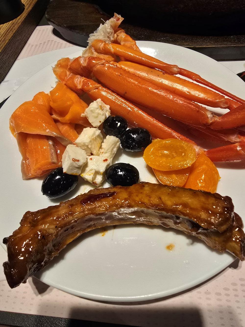 대게와 연어, 그리고 등갈비도 한조각 가져왔습니다.