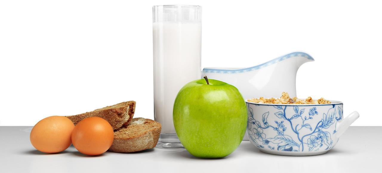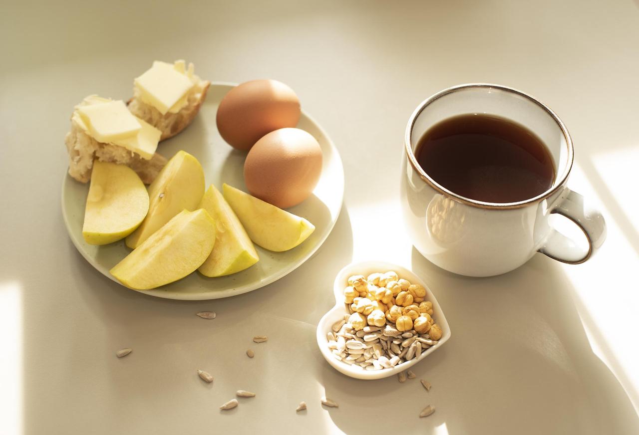 달걀 두 개와 사과 하나로 시작하는 아침.
