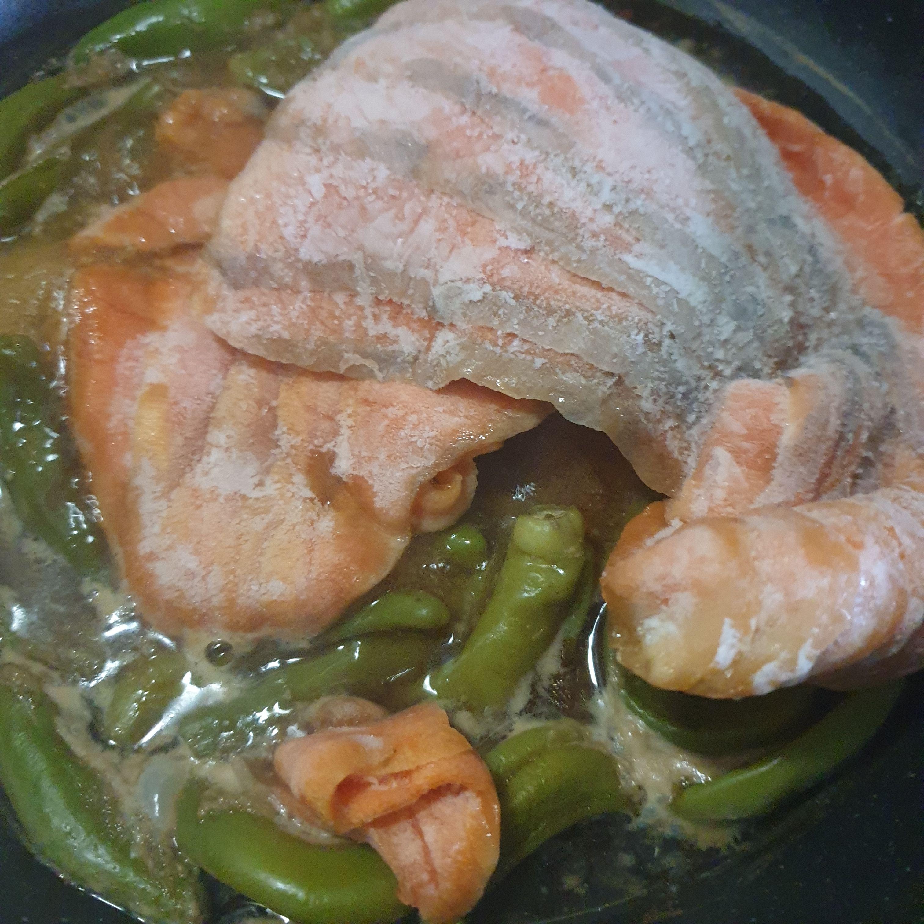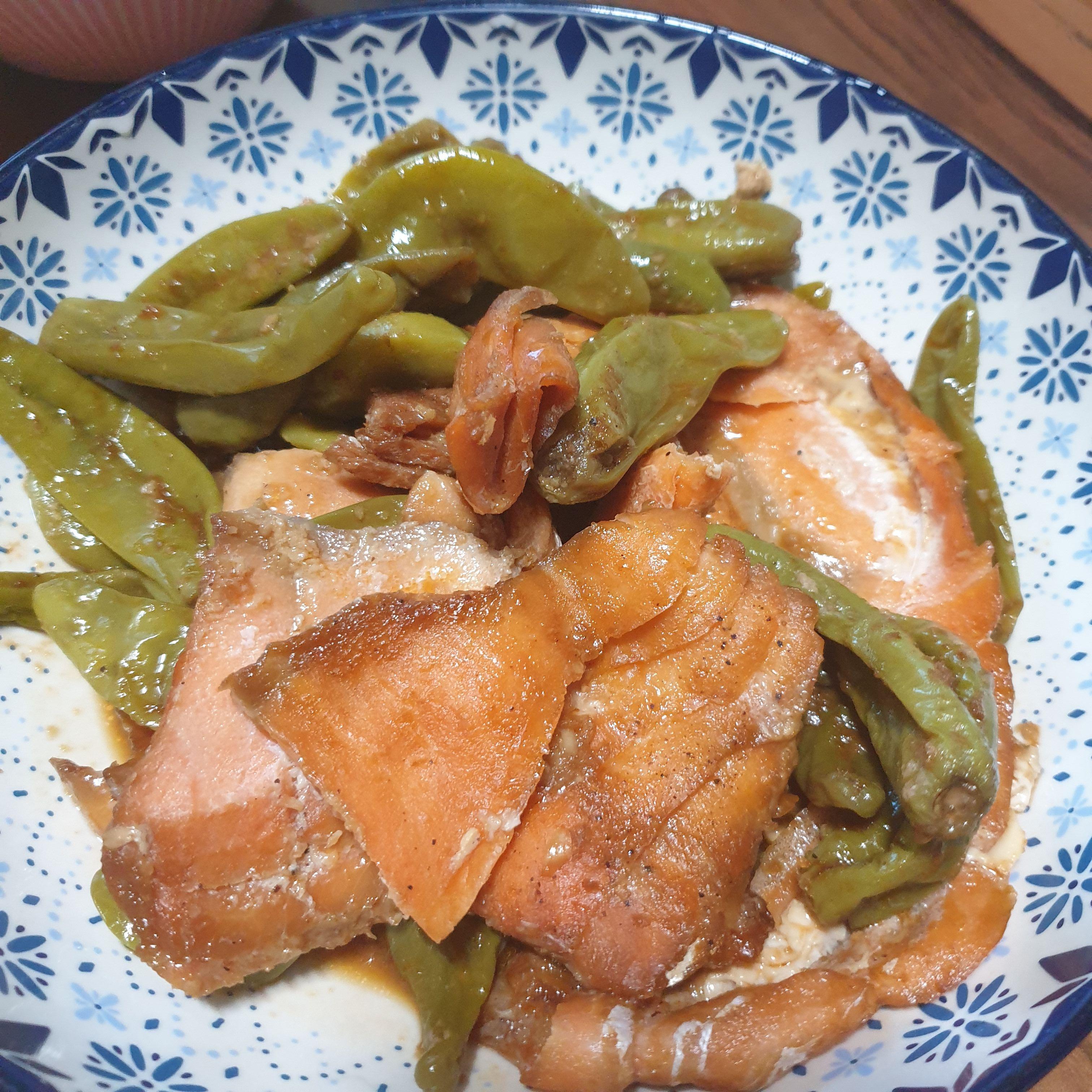 하는 수 없이 지난주에 어머님댁에 들렀을 때 가져온 꽈리고추를 꺼내들고 냉동실을 뒤적여 남아있는 고기중 유일한 물고기인 훈제연어를 꺼냈습니다. 훈제연어는 아이들이 초밥 먹고 싶어할때 해주려고 900g짜리 한 팩을 사놓은 것인데요. 아이들이 입이 어찌나 고급인지 생연어로 초밥해주다가 훈제연어로 초밥을 해주니 훈향때문에 '맛이없다'며 거부합니다.
