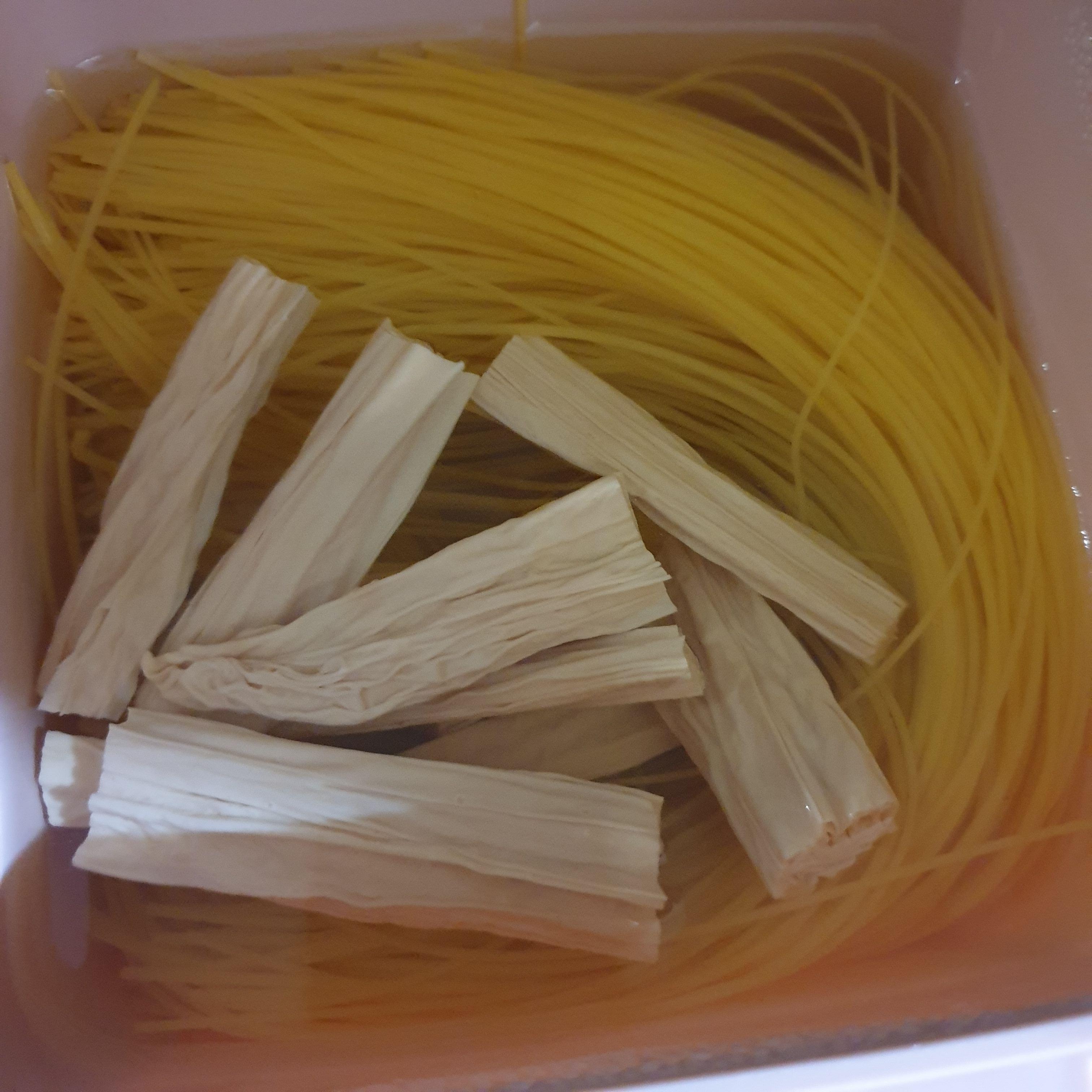 옥수수면과 푸주는 미리 전날 불려놓았습니다.