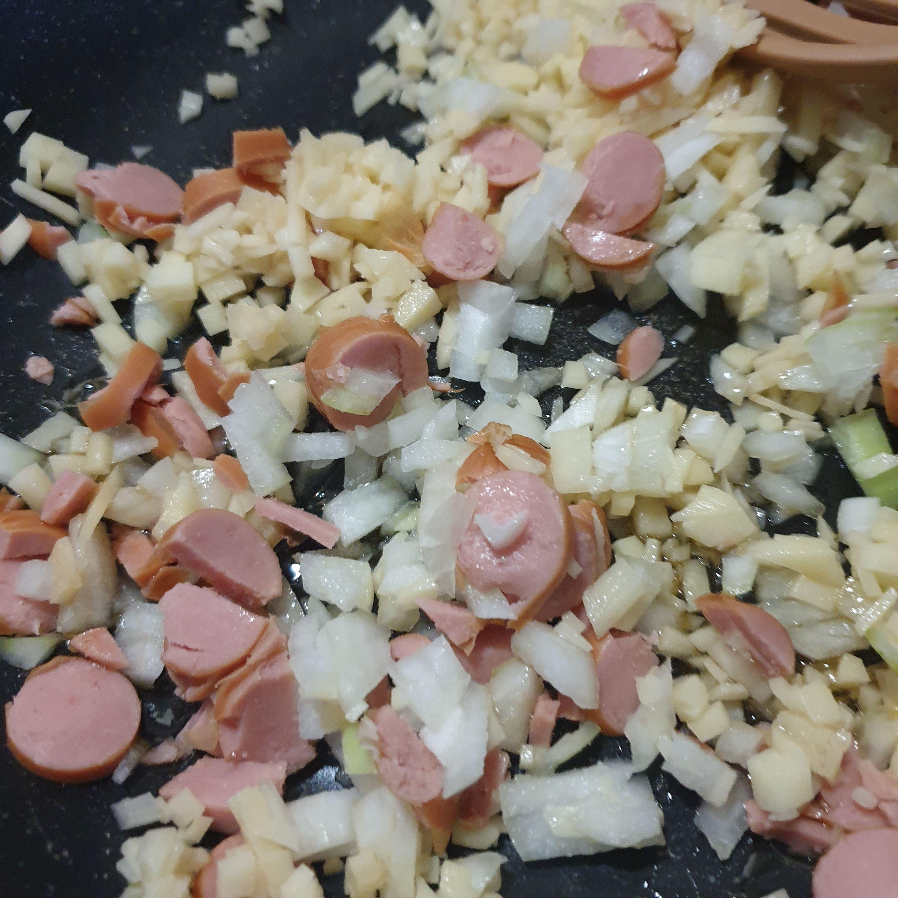 마라탕만 먹기는 그럴 것 같아 오므라이스를 함께 준비했습니다. 야채와 소시지를 다져넣고 딱 한 국자씩 떠내 만든 미니 오므라이스입니다. 마라탕과 함께 먹기엔 적당한 양이었던 것 같습니다.